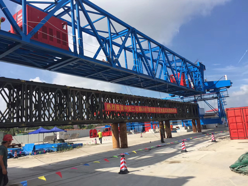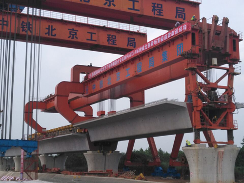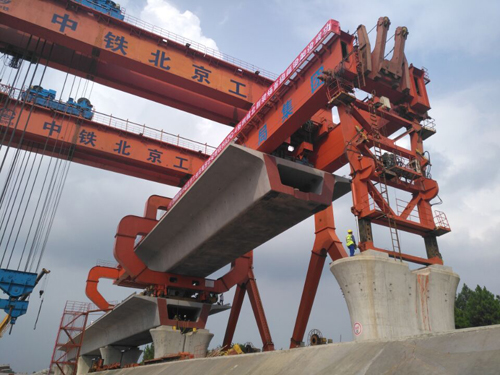 1.2017年8月16日,中鐵北京工程局合安項(xiàng)目桐城北梁場(chǎng)900t架橋機(jī)順利完成首架。